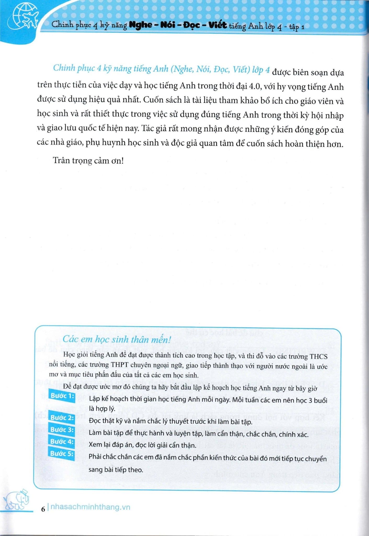 Cuốn sách biên soạn dựa trên sách giáo khoa thí điểm của Bộ Giáo Dục và Đào Tạo. Sách tập trung vào việc rèn luyện các kỹ năng cơ bản như : Nghe , nói , đọc , viết thông qua các bài tập và phát triển kỹ năng giao tiếp ; cách phát âm ; từ vựng phong phú ; đọc các đoạn hội thoại , đoạn văn ,… giúp các em vận dụng và tổng hợp kiến thức hiệu quả nhất .