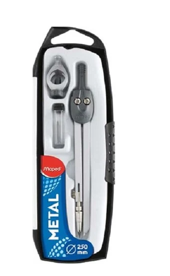 Maped compasses and math sets are perfect for school use. There is a wide, innovative selection ranging from basic compasses to technical models. This compass set includes 2mm lead compass with rigid legs, 1 universal holder and 1 pack of 2mm lead.