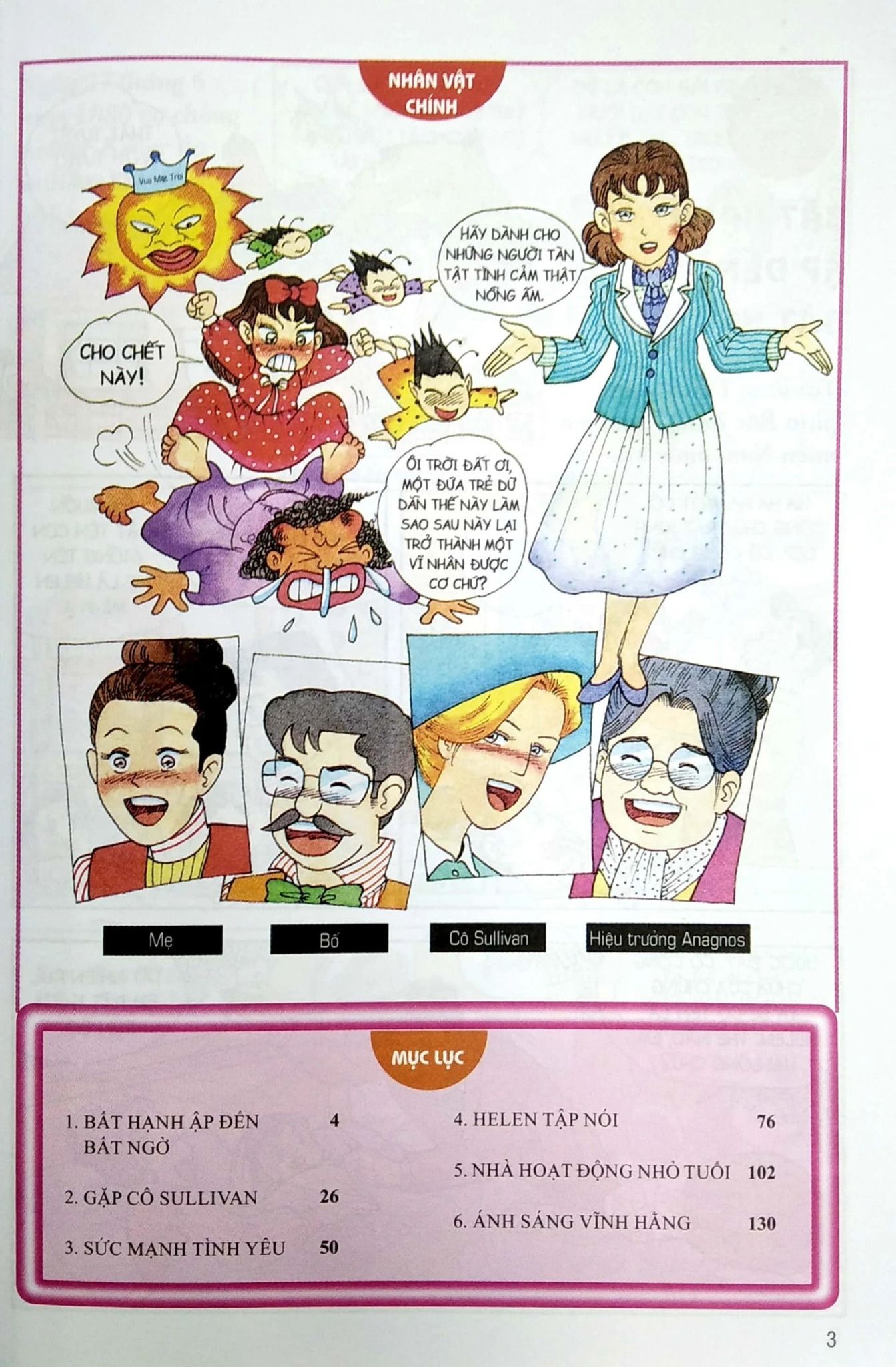 Helen Keller sinh ra trong một gia đình hòa thuận, hạnh phúc. Nhưng khi chưa đầy 2 tuổi do bị mắc chứng viêm màng não nên Helen bị câm, điếc, mù hoàn toàn. Thời thơ ấu phải sống trong bóng tối đầy vất vả khó khăn, nhờ có cô Sullivan giúp đỡ, Helen bắt đầu đi học và tập nói những câu đơn giản nhưng bà vẫn không thể nhìn và nghe được. Mặc dù vậy, với nghị lực phi thường bà đã tốt nghiệp thủ khoa Trường Đại học nữ Radcliffe thuộc Trường Đại học Tổng hợp Harvard.