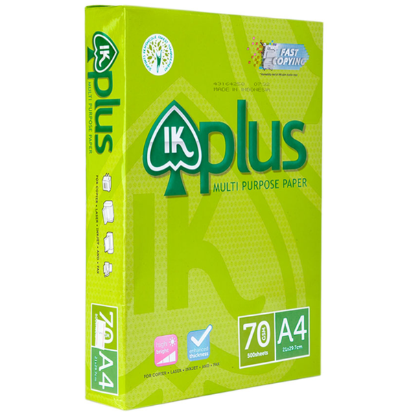 - Giấy A4 IK Plus 70 gsm là loại giấy in photo của thương hiệu giấy IK Plus nổi tiếng, được sản xuất theo công nghệ sản xuất giấy hiện đại tại Indonesia luôn đảm bảo cung cấp đến người dùng loại giấy in photo chất lượng tốt nhất.