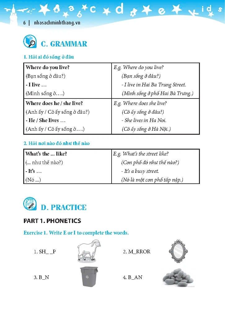 +PART D: PRACTICE (Củng cố phát âm, từ vựng, ngữ pháp, kỹ năng đọc và kỹ năng viết)