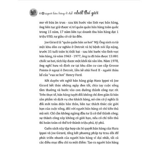 Vậy những nguyên tắc ấy là gì và làm cách nào để đưa chúng vào thực tiễn? Những bí mật này chỉ được tiết lộ khi bạn cầm trên tay cuốn sách Người bán hàng vĩ đại nhất thế giới, đọc thật cẩn thận, tiếp thu và lưu từng chi tiết.