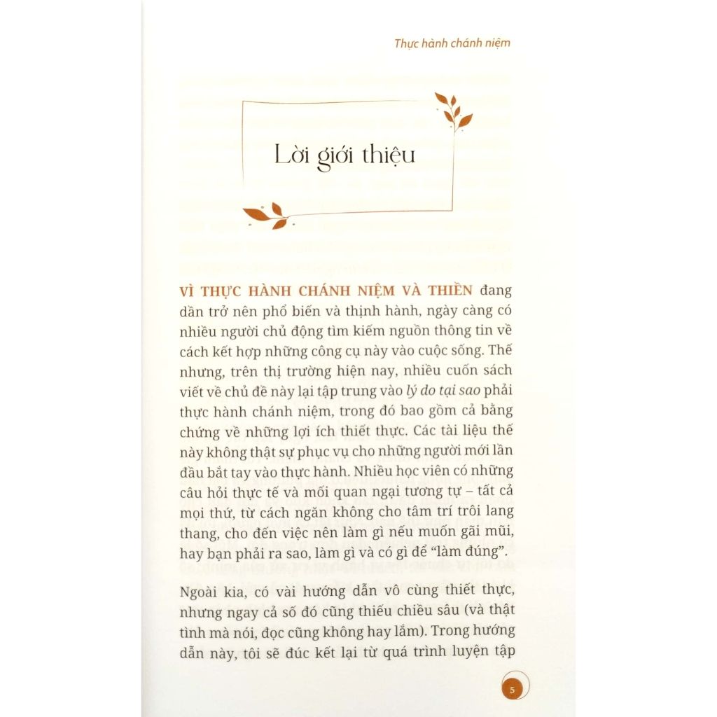 Hãy đến với Thực Hành Chánh Niệm của Matthew Sockolov. Sách giới thiệu 75 bài thực hành chánh niệm đúc kết từ quá trình hành thiền cùng nhiều năm giảng dạy thiền của tác giả, giới thiệu những cách tiếp cận chánh niệm đơn giản mà hiệu quả, phù hợp với nhiều tính cách và lối sống khác nhau. Mỗi bài tập được thiết kế chi tiết, tỉ mỉ, giúp người đọc dễ dàng nắm bắt và thực hiện theo. Thực Hành Chánh Niệm là cẩm nang không thể thiếu dành cho những người muốn cải thiện sức khỏe tinh thần và tìm thấy bình yên trong đời sống thường nhật.