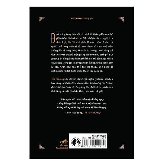 Được xưng tụng là tuyệt tác binh thư hàng đầu của thế giới cổ đại, binh thư kinh điển vĩ đại nhất trong lịch sử nhân loại, Tôn Tử binh pháp là một cuốn cổ thư “kỳ quái”, “để trong vườn sẽ tỏa mùi thơm của hoa quý, ném xuống đất sẽ vang tiếng kêu của bạc vàng”. Nó không chỉ được các vua chúa từ đông sang tây xem như sách gối đầu giường, bí kíp quân sự không thể thiếu, mà còn được nhiều chuyên gia trong các lĩnh vực như triết học, kinh doanh, tâm lý học, ngôn ngữ học, thể dục thể thao… ứng dụng để nghiên cứu và đạt được nhiều thành tựu đáng kể.